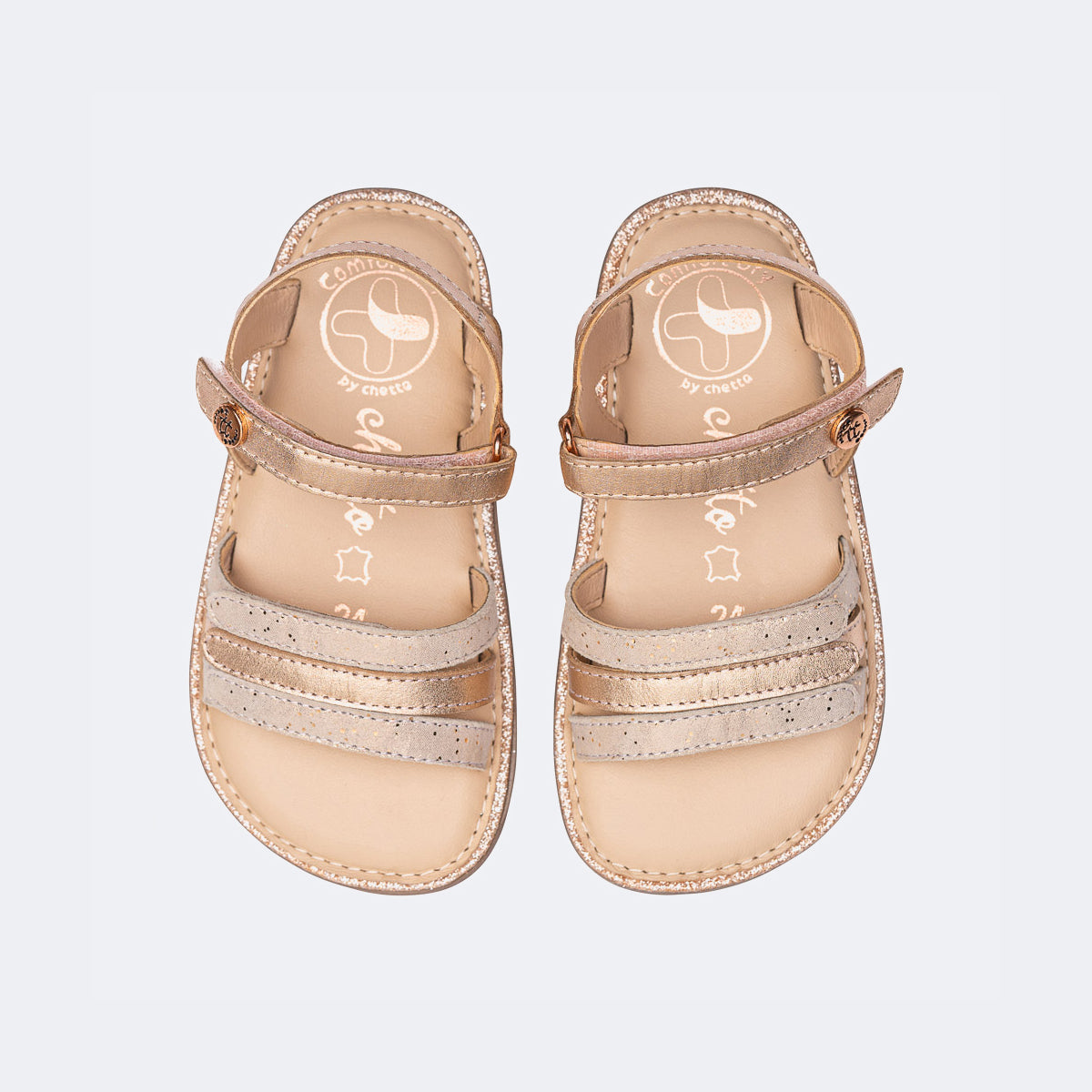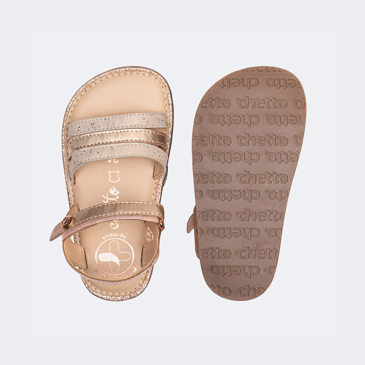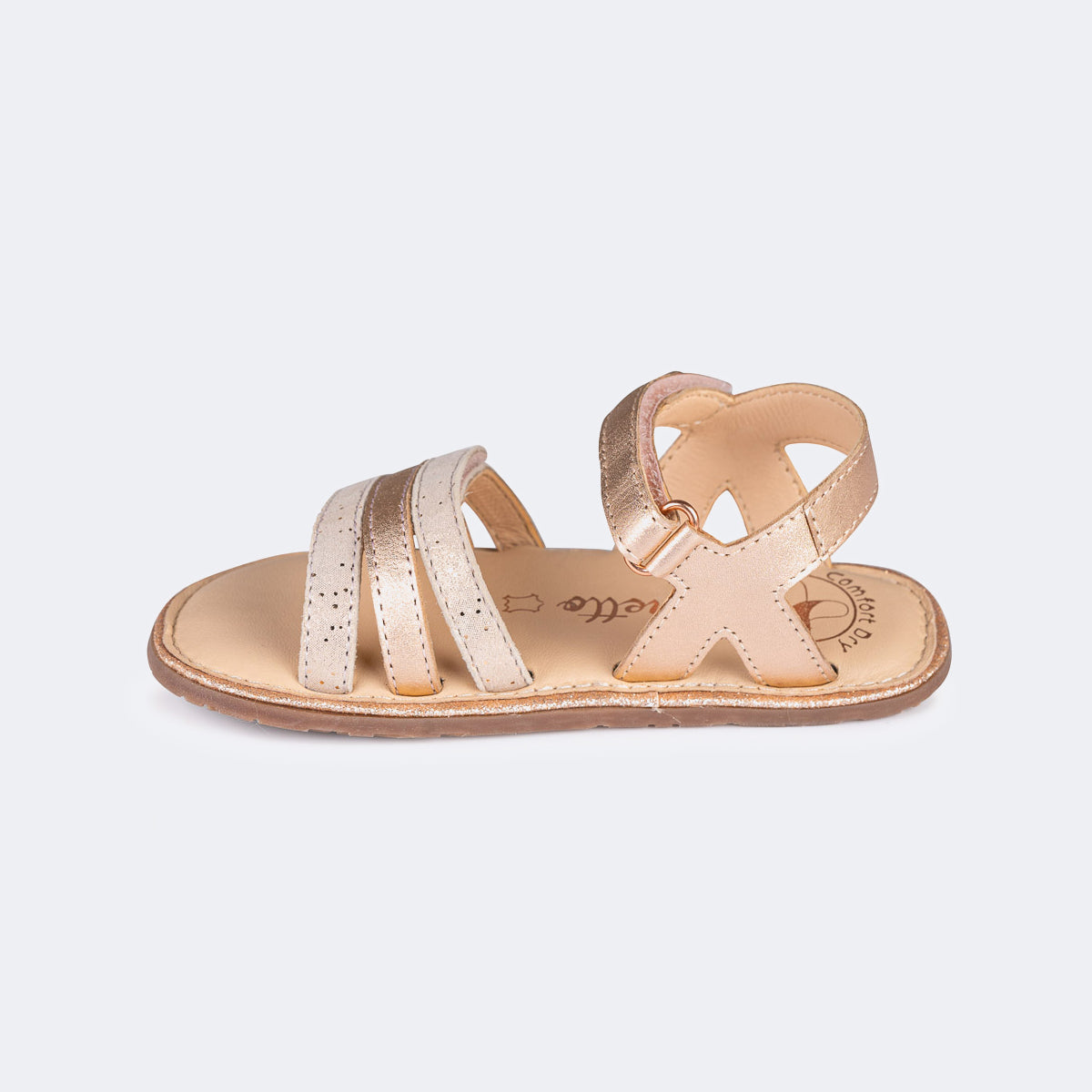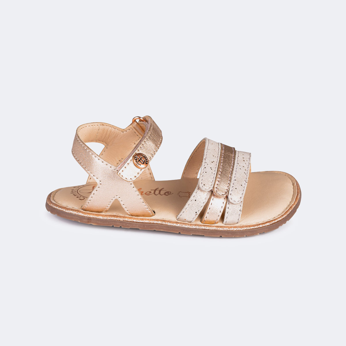 O Modelo de sandália Oro Rosado da Chetto fabricado em pele de alta qualidade com um design de 3 tiras. Esta sandália é o toque de elegância e versatilidade para qualquer look de verão.