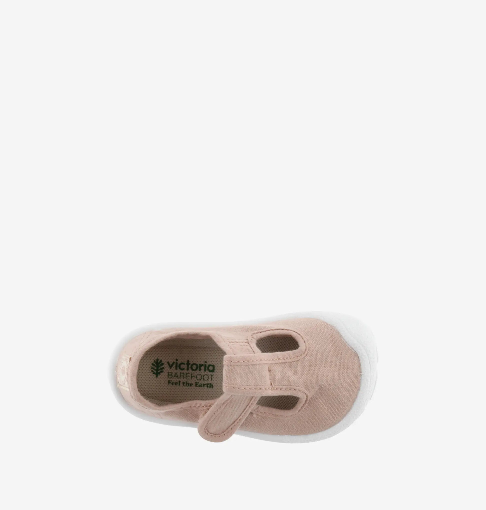 O modelo Bosco Barefoot Sandalia da Victoria, fabricado em Espanha com algodão reciclado e ecológico, respeitando o meio ambiente. Este modelo é flexível, com uma forma larga e leve permitindo a liberdade de movimento dos pés.