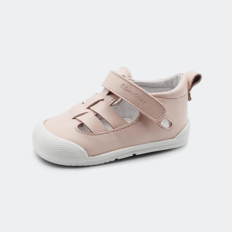 O modelo de sandálias Mar da Blanditos, criado com um design simples e elegante, proporciona frescura e liberdade em dias mais quentes. O velcro permite ajustar a sandália na zona do tornozelo e a ponteira ampla e reforçada oferece segurança nas aventuras dos mais pequenos.
