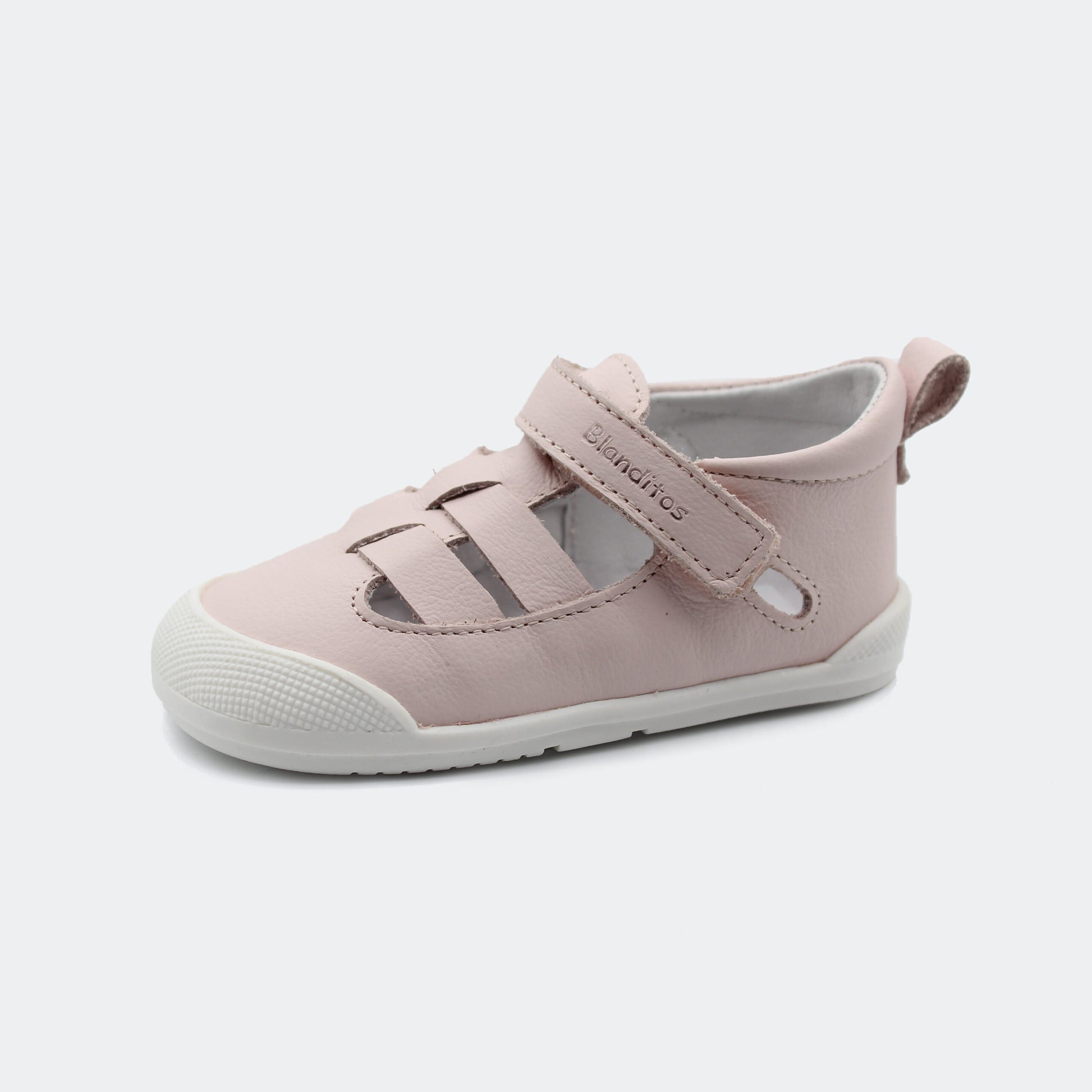 O modelo de sandálias Mar da Blanditos, criado com um design simples e elegante, proporciona frescura e liberdade em dias mais quentes. O velcro permite ajustar a sandália na zona do tornozelo e a ponteira ampla e reforçada oferece segurança nas aventuras dos mais pequenos.