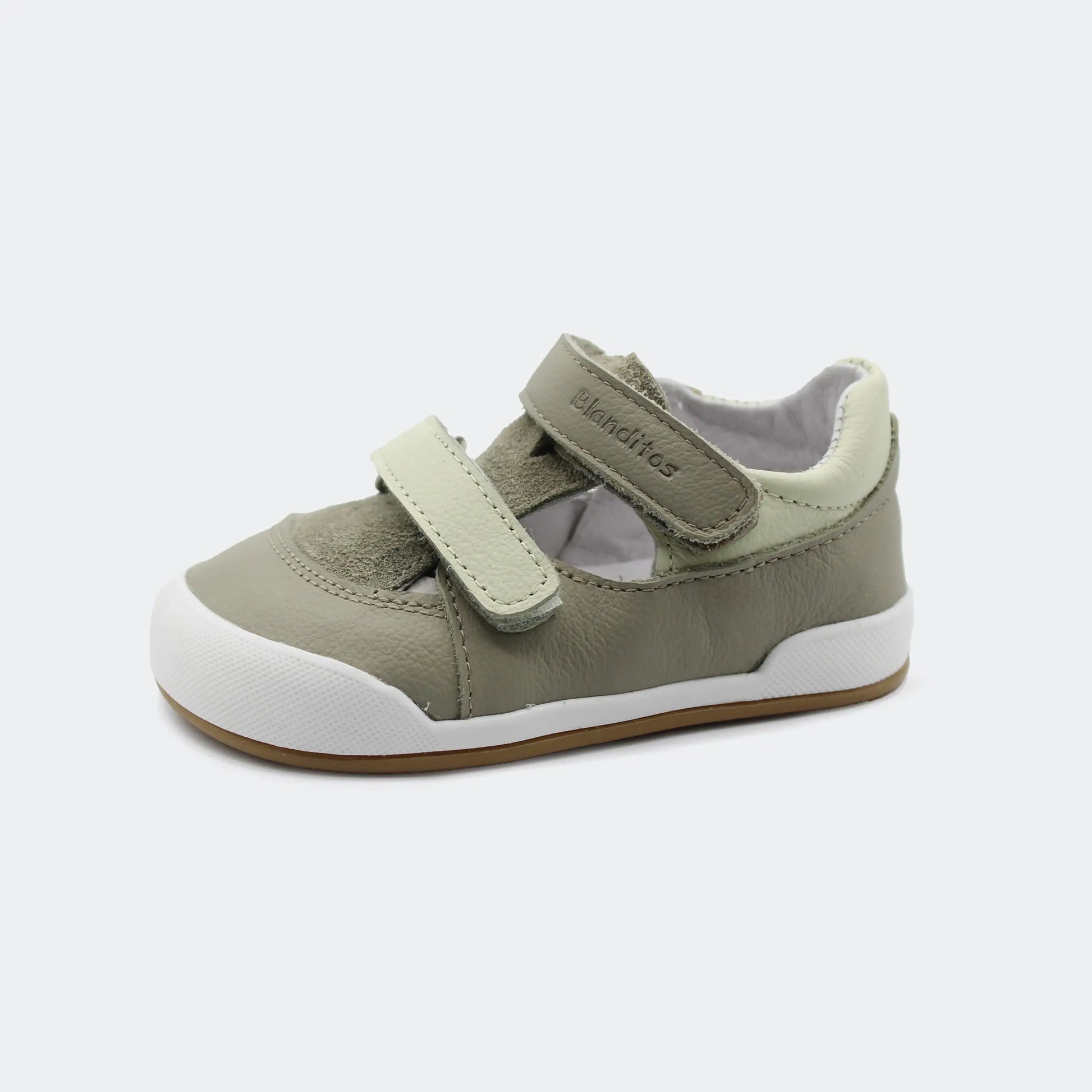 O modelo de sandálias Popa da Blanditos, criado com um design minimalista e elegante, proporciona frescura e liberdade em dias mais quentes. Duplo velcro que facilita o calçar e descalçar, incentivando a autonomia dos mais pequenos.