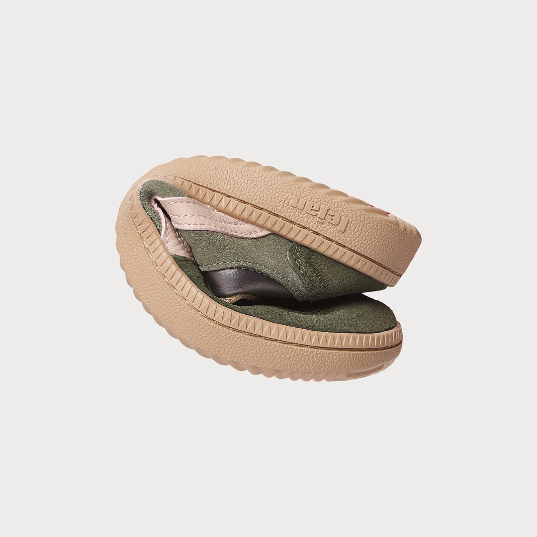 A conjugação de couro e couro rachado proporciona resistência e durabilidade, com um acabamento elegante. Sistema de regulação: Velcro com cordões elásticos: Oferece um ajuste seguro e é fácil de pôr e tirar.
