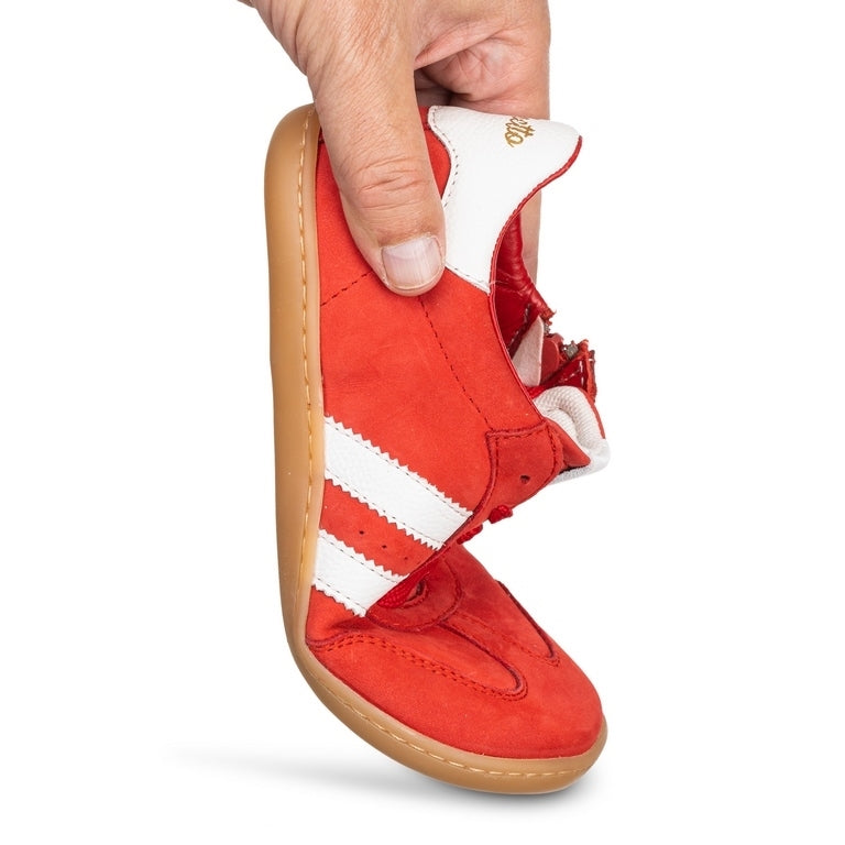 Fabricado em couro, este modelo é prático e confortável, com tira de velcro e atacadores elásticos que facilitam o calçar e descalçar.